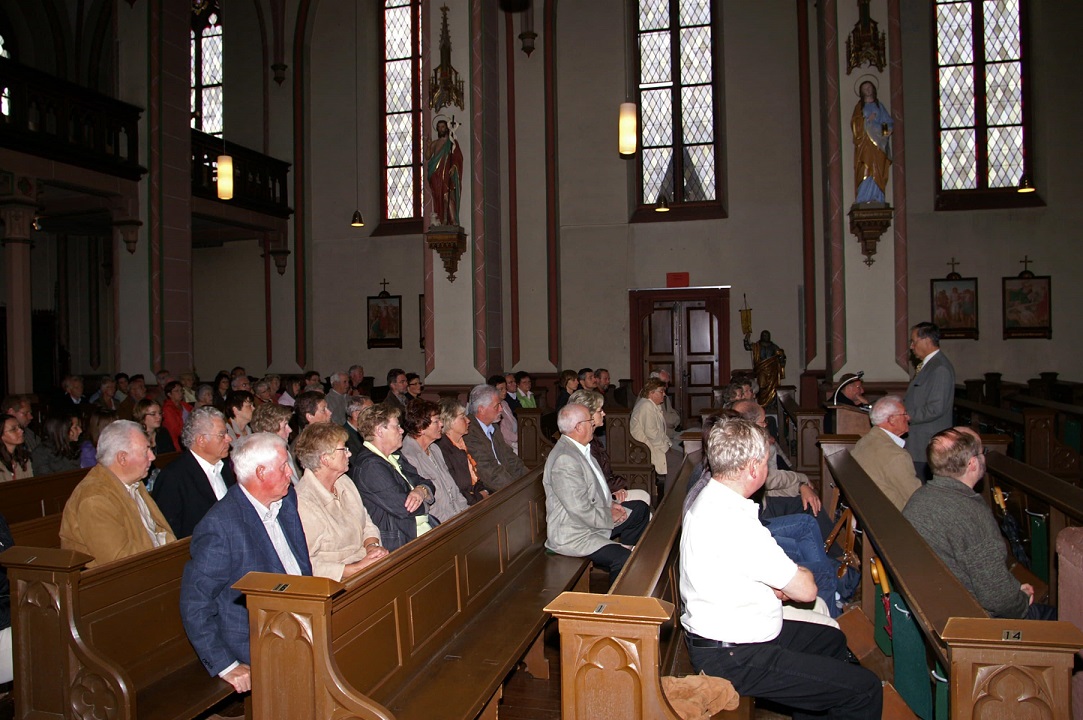 Beim „Tag des offenen Denkmals“, der jährlich am zweiten Wochenende im September stattfindet, hatten sich viele Besucher eingefunden. Zu diesem Anlass stellte unser Vereinsmitglied Otto Stahlhofen den „Kleinen Kirchenführer“ vor. Er hat dieses Heftchen verfasst. Beim anschließenden Rundgang erfuhren die Besucher viel Interessantes über die historische Inneneinrichtung unserer Kirche.