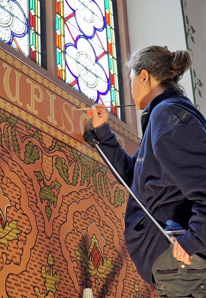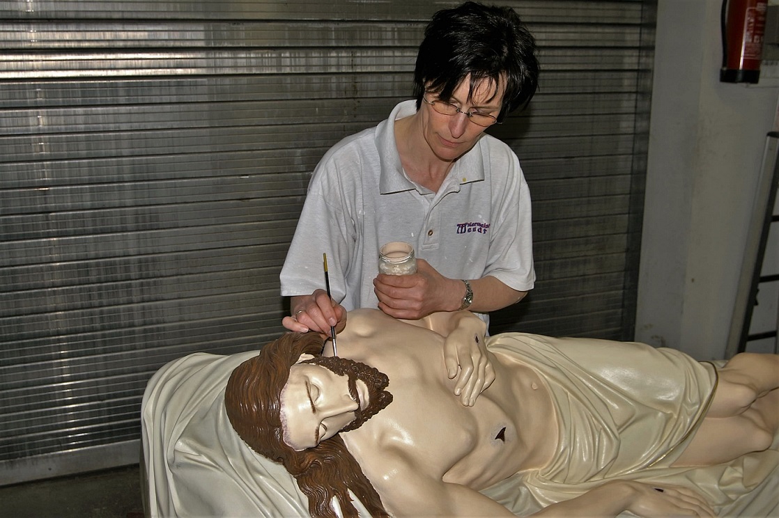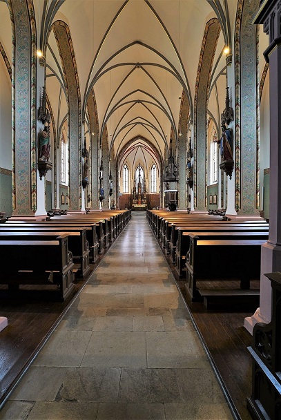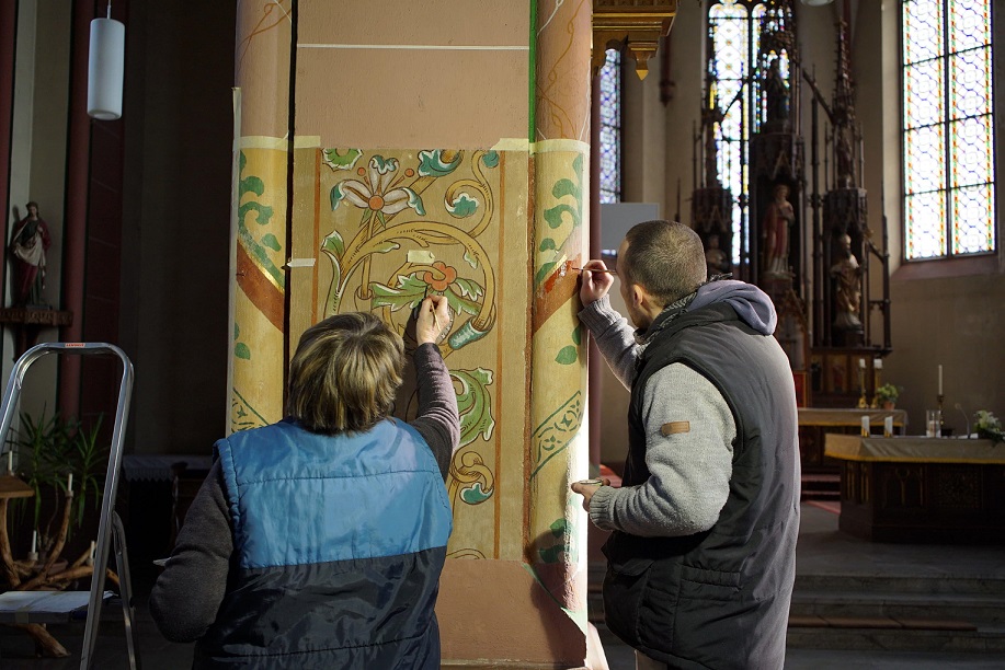 Die Heiligenfiguren an den Säulen im Mittelschiff hatte Pfarrer Theodor Reichwein 1868 durch Spendengelder von der Mayer`schen Kunstanstalt in München beschafft. Die farbliche Fassung war in den 140 Jahren beschädigt und verblasst. Eine Restauratorin übernahm die farbliche Neufassung. Die Finanzierung hat der Förderkreis getragen.