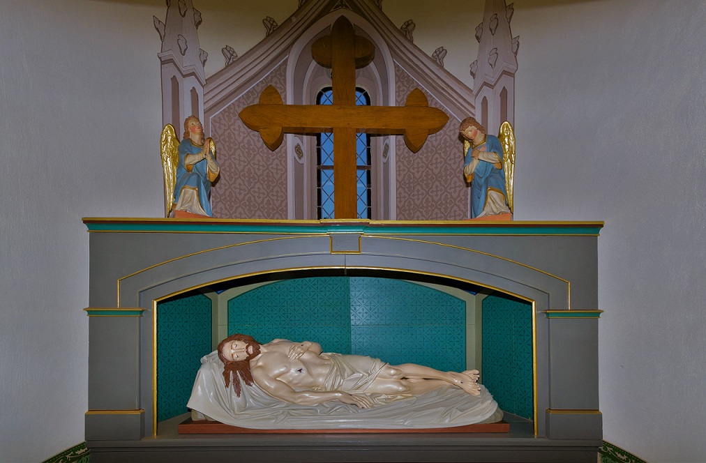 Ein solch heiliges Grab gibt es nur noch selten in Kirchen. So ist es eine Besonderheit in unserer Kirche, dass wir für die Darstellung des toten Jesus sogar eine eigene Kapelle haben, die am Karsamstag, dem Tag der Grabesruhe, ihren eigentlichen Tag hat. Aber auch bei Requien für die Verstorbenen wird die Tür geöffnet. Zur Karwoche 2011 konnte die Grabkapelle in renoviertem Zustand wieder geöffnet werden.