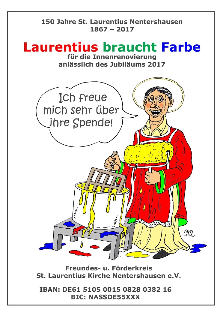 Werden auch Sie Mitglied im Freundes- u. Förderkreis St. Laurentius Kirche Nentershausen e.V. Spendenkonto: Naspa DE61 510 500 150 828 03 8216