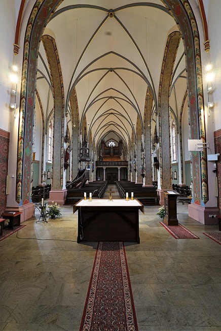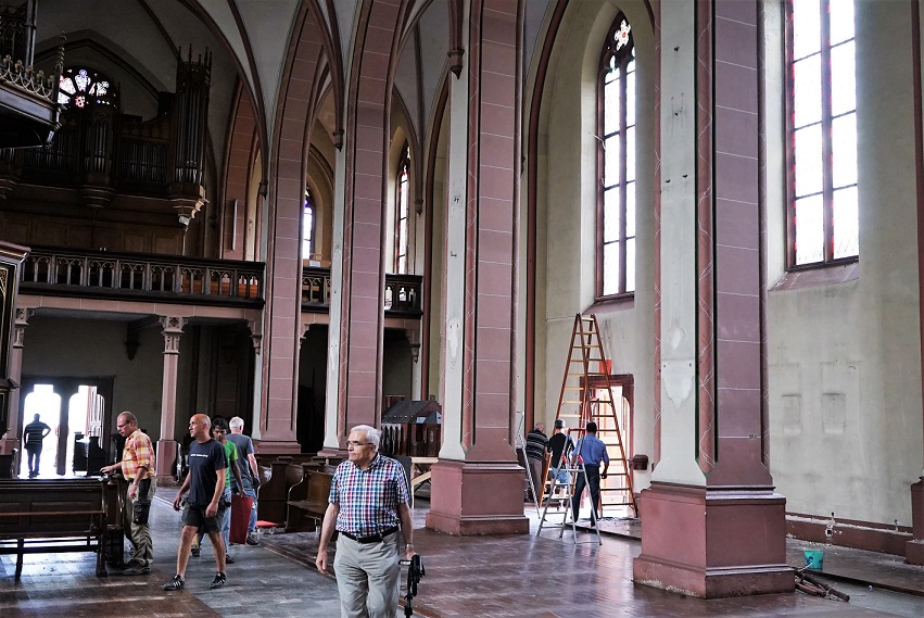 Wenn auch durch das Auflegen der durchgehenden Sitzkissen die Kirchenbänke nicht bequemer wurden, so sind sie doch angenehm, nachdem die Kirche seit 2021 nicht mehr beheizt wird. Die Kosten von 10.000 € übernahm der Förderkreis.