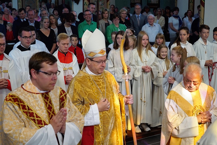 Begonnen wurde der Bau bereits im Jahr 1863. Der Gedenkstein an unserer Kirche lautet jedoch auf das Jahr 1864. Den Festgottesdienst zelebrierte der Historiker und Kunstsachverständige des Bistums Limburg Herr Pfarrer Prof. Dr. Matthias Kloft. Er erinnerte daran, dass es politisch und wirtschaftlich eine schwere Zeit war. Umso bewundernswerter sei die Leistung der Menschen von damals gewesen, solch ein großes und imposantes Bauwerk zu errichten. Es war die erste Kirche im Westerwald im Neugotischen Stil in Ziegelsteinbauweise. Wegen ihrer Größe wurde sie zu dieser Zeit „Westerwälder Dom“ genannt.