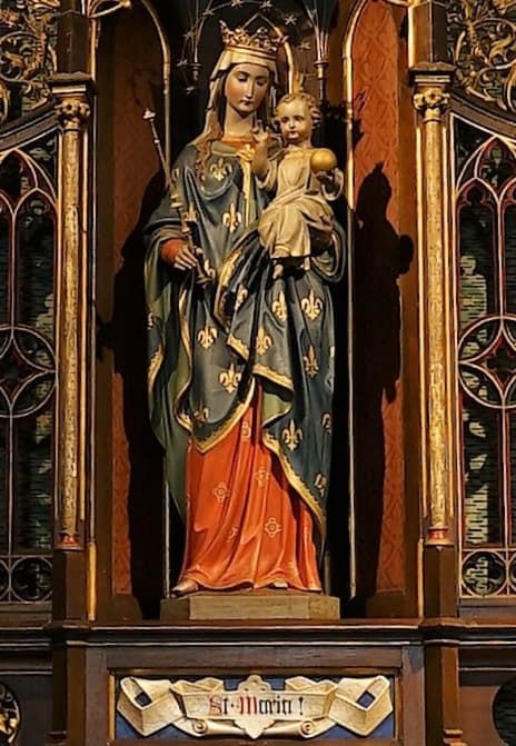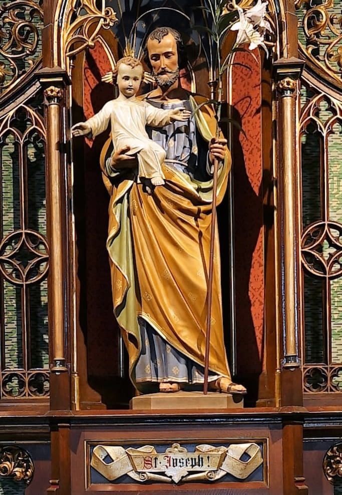 Die Seitenaltäre wurden 1869 auf Initiative des damaligen Pfarrers Theodor Reichwein, von der Mayer´schen Kunstanstalt in München bezogen. Der originale Schriftzug war verloren und durch eine laienhafte Kopie in Schnitzarbeit ersetzt worden. Dank einer Spende der Frauengemeinschaft, fertigte ein Schnitzer aus Bayern ein neues Schriftband. Als Vorlage diente das Schriftband des Josefsaltars.